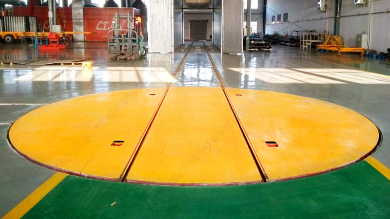 我公司生產(chǎn)的電動換軌轉(zhuǎn)盤是一種能夠在90度轉(zhuǎn)彎的軌道上運行的轉(zhuǎn)運車。它的工作原理是:轉(zhuǎn)運車運行至軌道轉(zhuǎn)盤,通過手動手動或自動旋轉(zhuǎn)電動旋轉(zhuǎn)平臺,與垂直軌道對接,使轉(zhuǎn)運車可沿垂直軌道運行,實現(xiàn)90度轉(zhuǎn)彎。